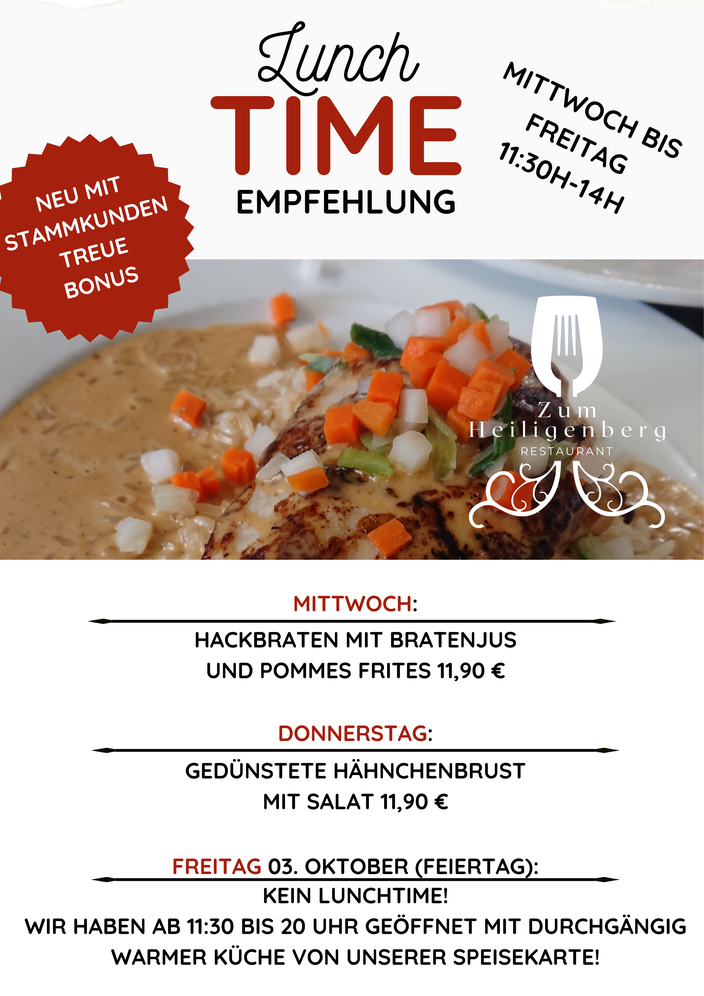 Freuen Sie sich auf köstliche und preiswerte Mittagsgerichte